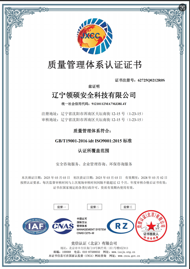 遼寧領(lǐng)碩安全科技有限公司位于遼寧省沈陽市渾南區(qū)天壇南街12-15號,注冊資金300萬。主要經(jīng)營范圍為遼寧省范圍內(nèi)的安全環(huán)保咨詢,生產(chǎn)安全事故應(yīng)急預(yù)案技術(shù)服務(wù)、企業(yè)雙重預(yù)防機(jī)制建立、履職能力評估、企業(yè)科研項(xiàng)目安全部分服務(wù)等的技術(shù)服務(wù)機(jī)構(gòu)。現(xiàn)有員工12人,其中包括5名遼寧省級安全生產(chǎn)專家。成立于2022年4月18日,在盤錦市成立至今已經(jīng)為30余家企業(yè)提供了安全環(huán)保技術(shù)咨詢。 業(yè)務(wù)范圍包括:技術(shù)服務(wù)、技術(shù)開發(fā)、技術(shù)咨詢、技術(shù)交流、技術(shù)轉(zhuǎn)讓、技術(shù)推廣,安全咨詢服務(wù),環(huán)保咨詢服務(wù),標(biāo)準(zhǔn)化服務(wù),企業(yè)管理咨詢,科技中介服務(wù),工程管理服務(wù),特種作業(yè)...查看更多